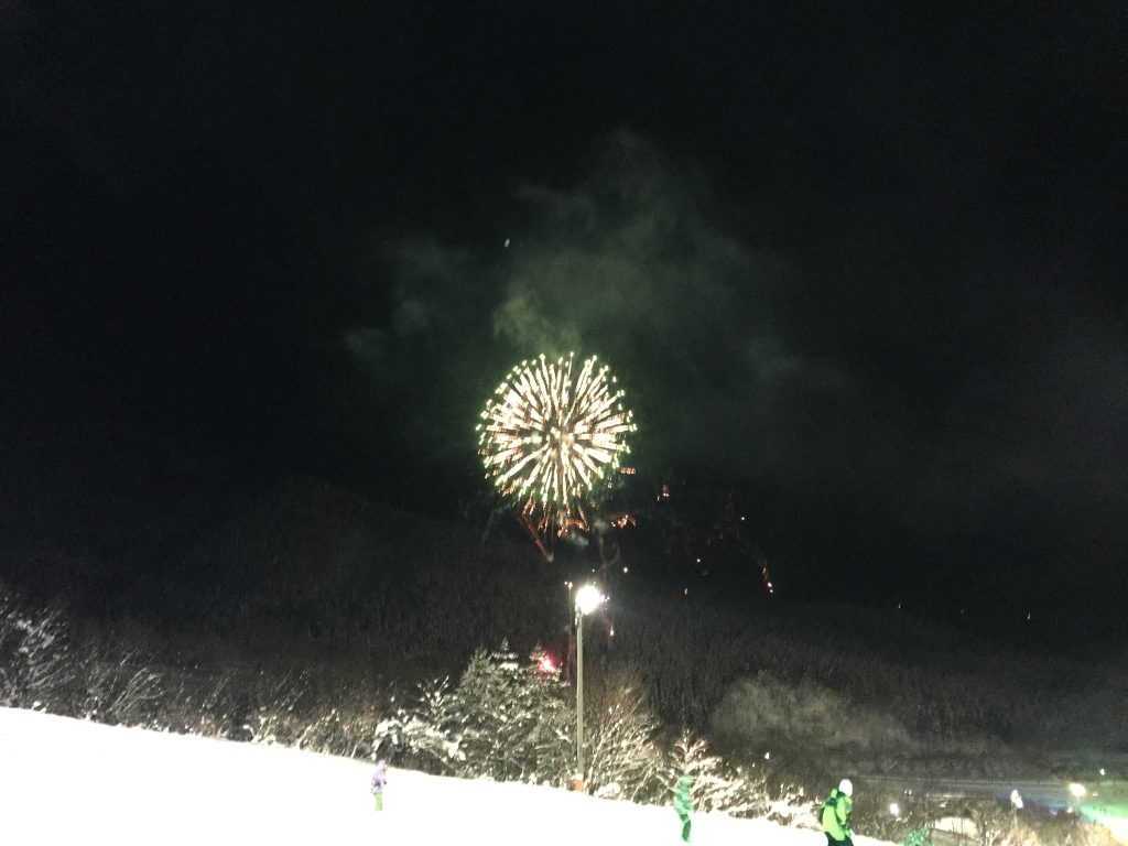 当日は18:00頃に雪中花火が上がります。山頂付近から見下ろす花火は絶景です!